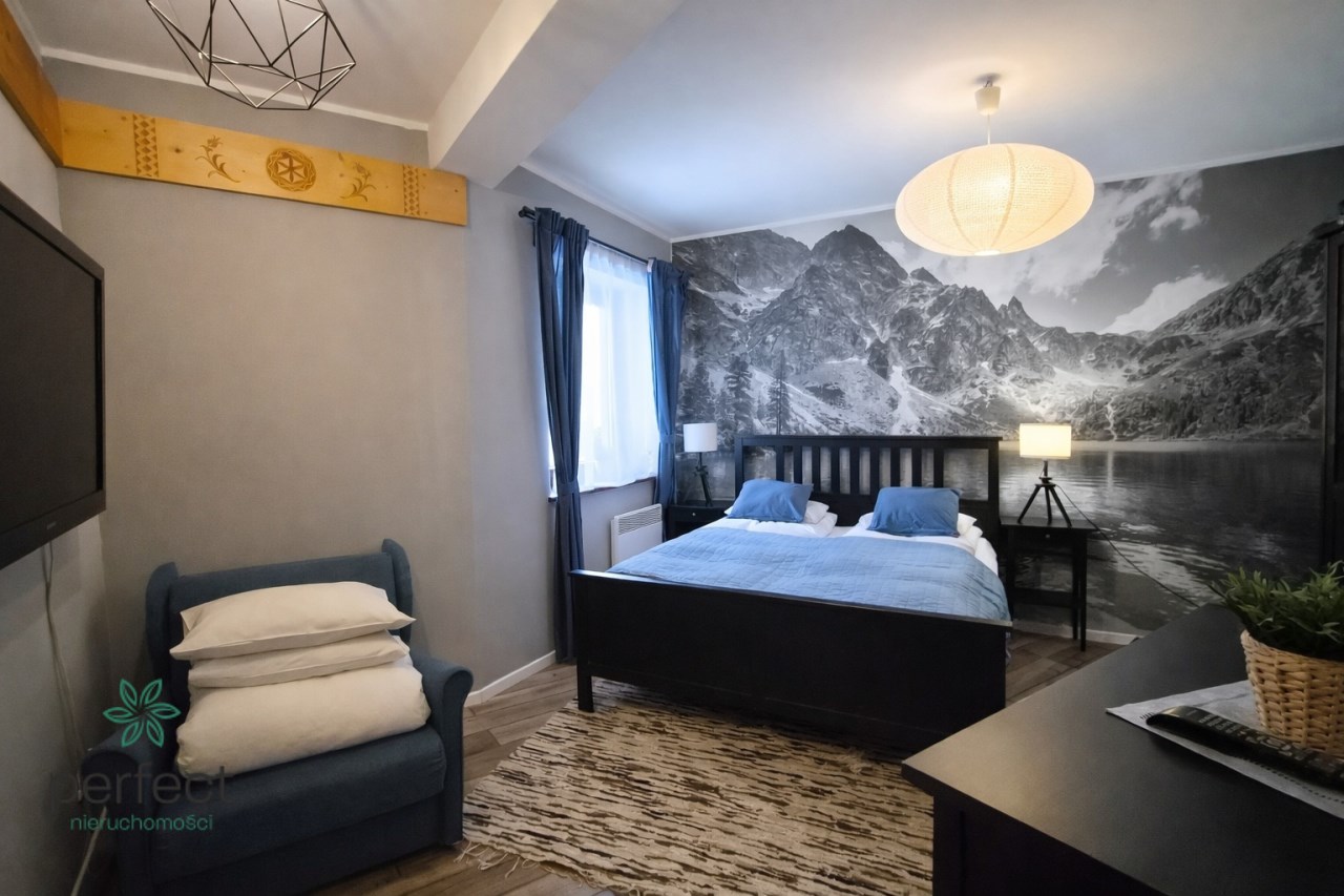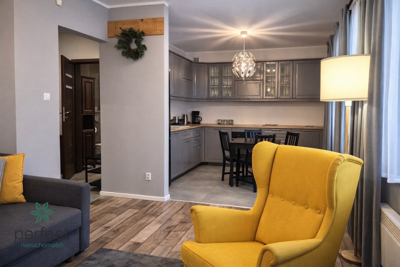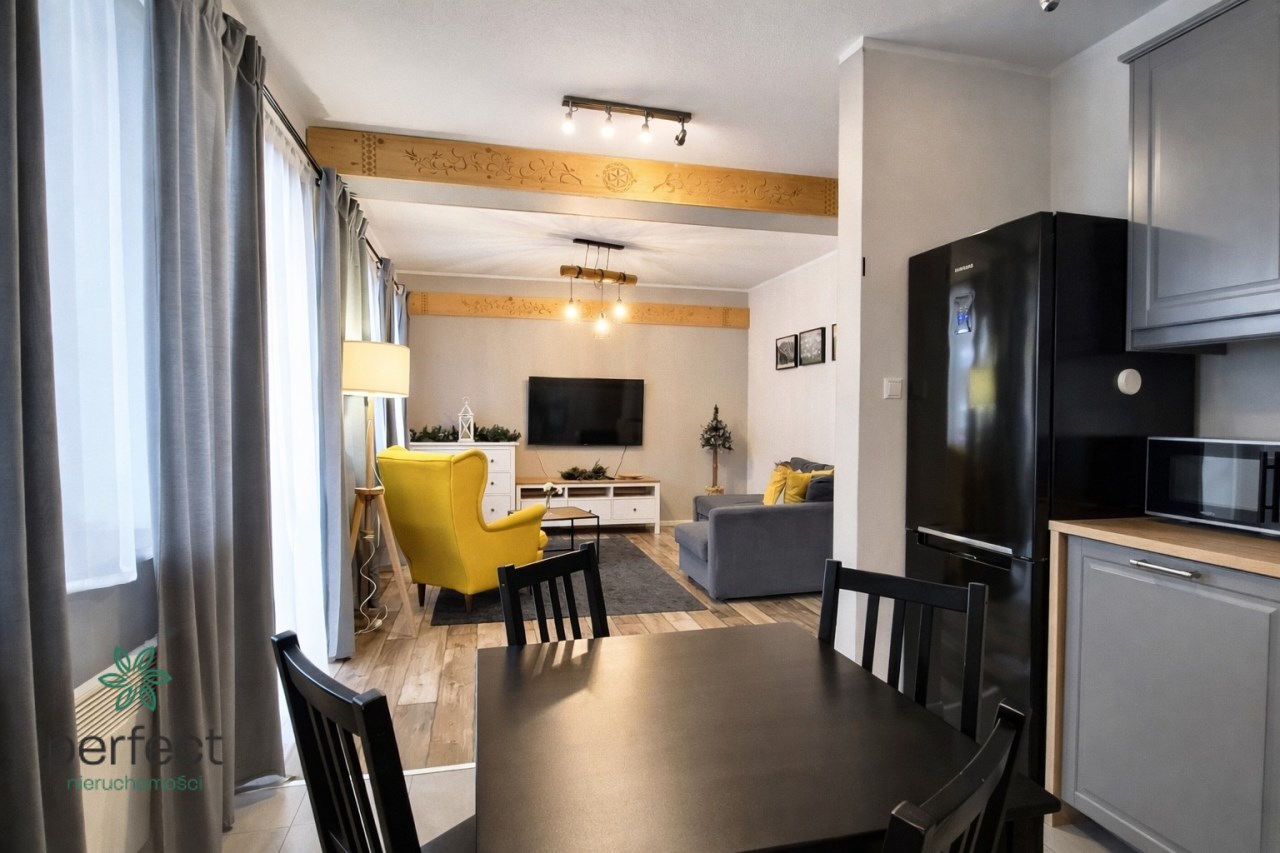 Biuro Perfect Nieruchomości Zakopane prezentuje na sprzedaż elegancki, w pełni wyposażony apartament, położony w spokojnej i zielonej części Zakopanego, idealny zarówno jako inwestycja pod wynajem krótkoterminowy, jak i komfortowe miejsce wypoczynku w górach.