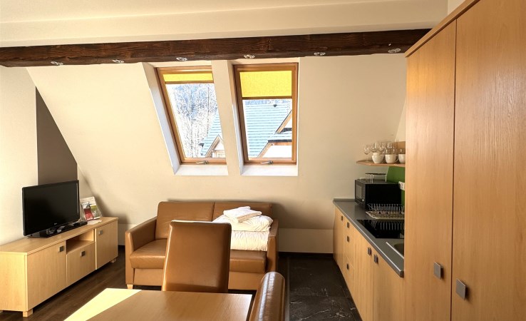 Zatrzymaj się na chwilę. Zamknij oczy i wyobraź sobie poranek z widokiem na Tatry. Cisza, górskie powietrze i słońce wpadające przez balkonowe okno. Tak właśnie wygląda codzienność w tym apartamencie – położonym tuż przy wejściu do jednej z najpiękniejszych tatrzańskich dolin.